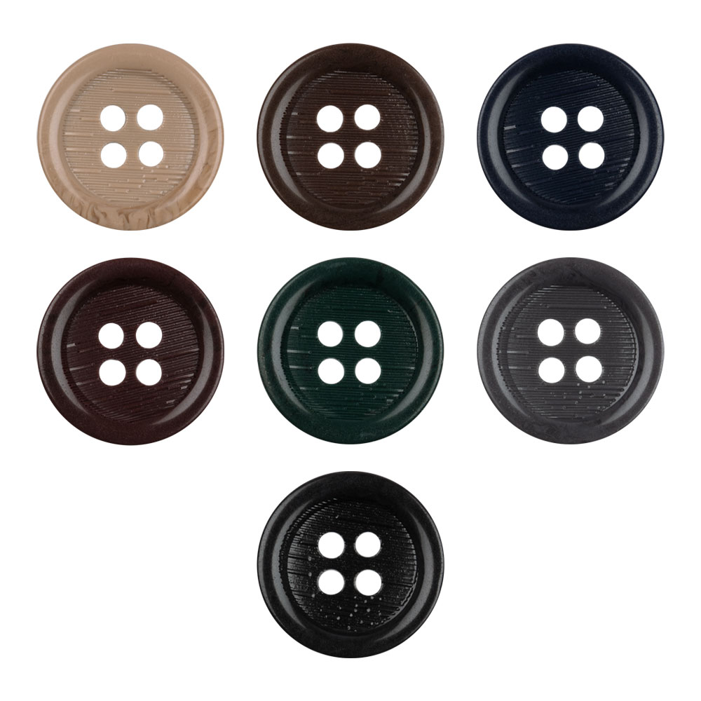 Пластиковая пуговица костюмная ТМ "BLITZ", артикул: DRN 0046 круглая на четыре прокола, диаметром 15 мм.