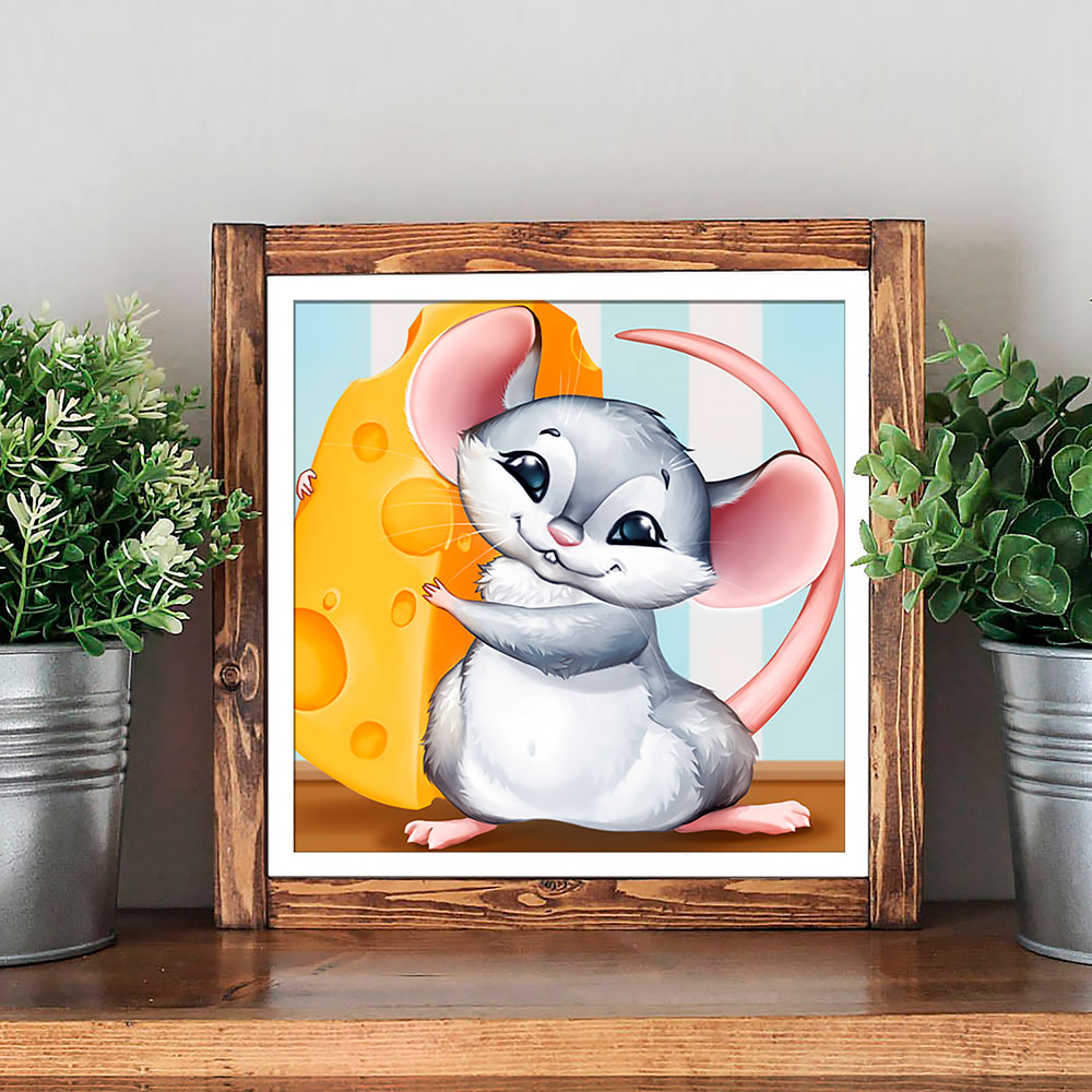 - "Алмазная живопись" Набор для изготовления картины из страз АЖ-1808 "Крыска и сыр" 15 х 15 см