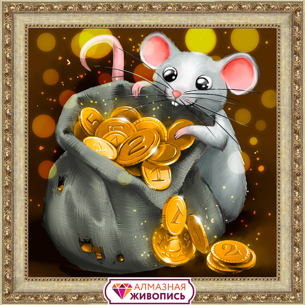 - "Алмазная живопись" Набор для изготовления картины из страз АЖ-1810 "Крысенок и клад" 15 х 15 см