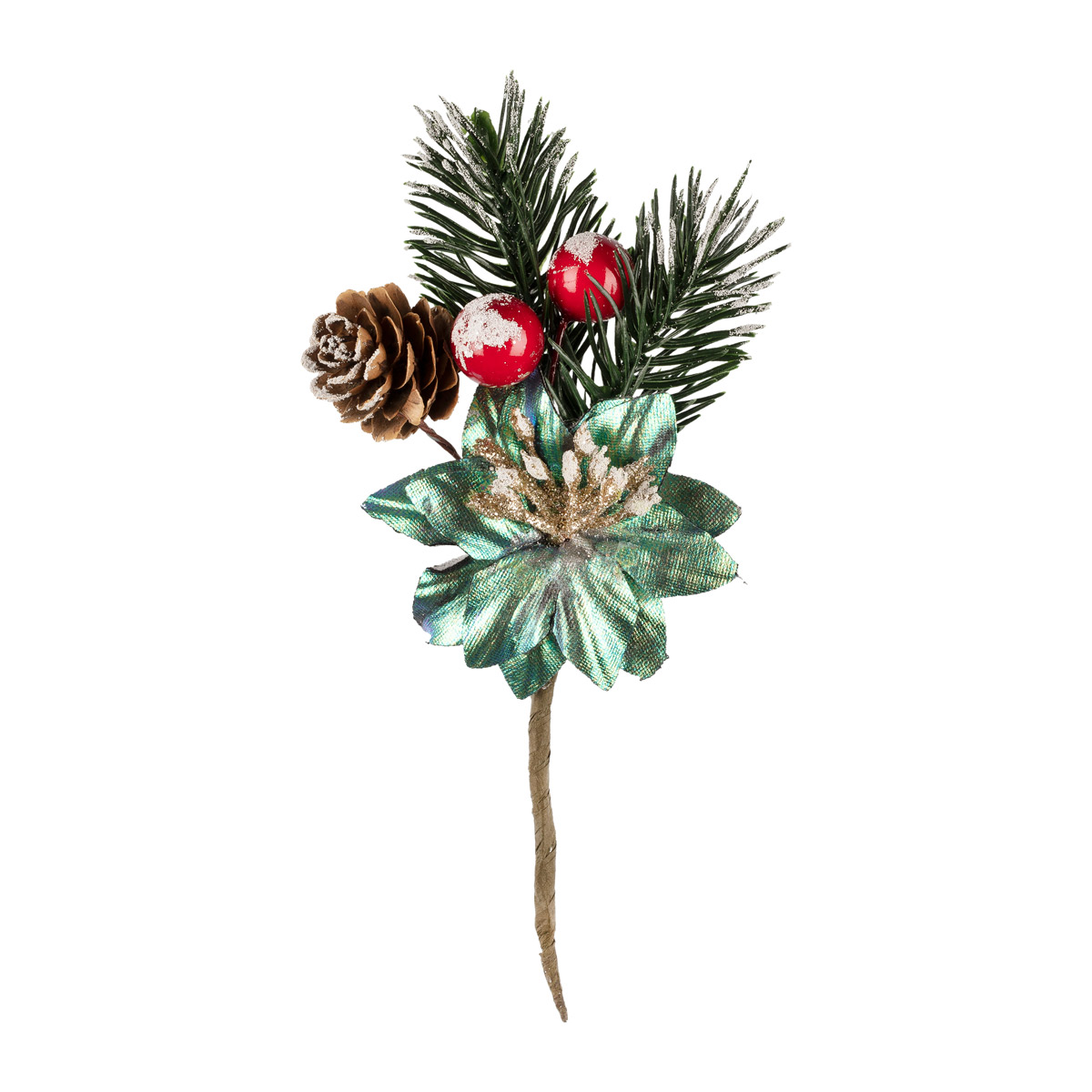 "Blumentag" VDD-46 Декоративные элементы 1 шт 15 см 01 еловая веточка с ягодами, шишкой и цветком