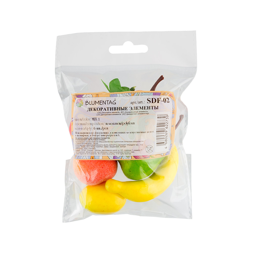Декоративные элементы в виде ярких фруктов, овощей и ягод — используются во флористике, в композициях из искусственных цветов, в букетах из конфет, в топиариях, в декоре интерьера. Прекрасно подойдет в качестве самостоятельного аксессуара или украшения для домашней кухни, витрин магазинов, ресторанов и кафе.
