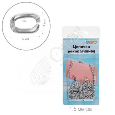 Цепочка декоративная DMO 6 х 4 х 1 мм /1,5 м под серебро
