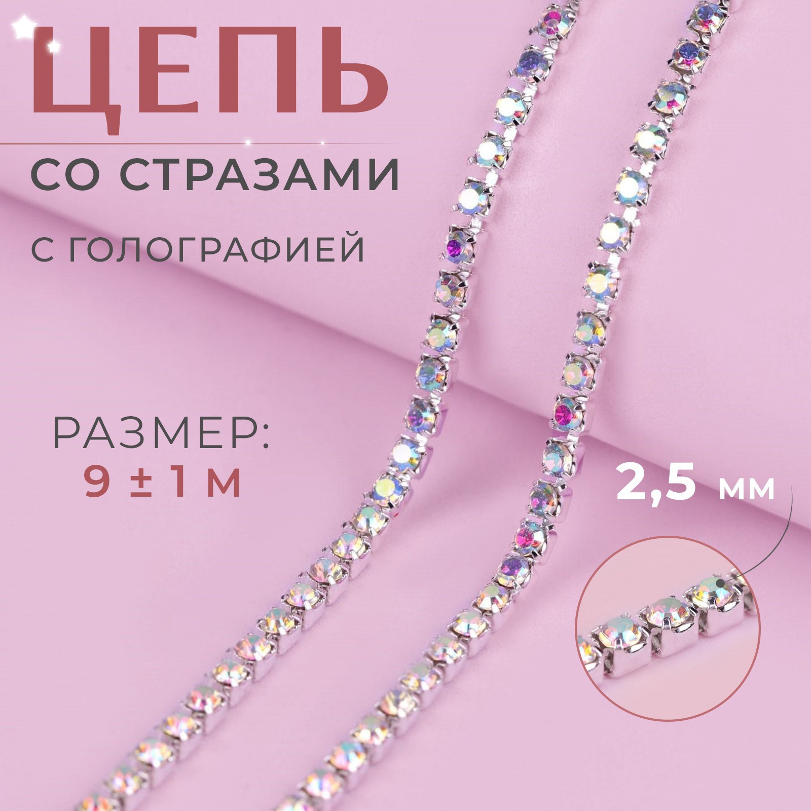 Цепь со стразами голографияметалл стекло 2,5 мм 9 ± 1 м под серебро 4325410