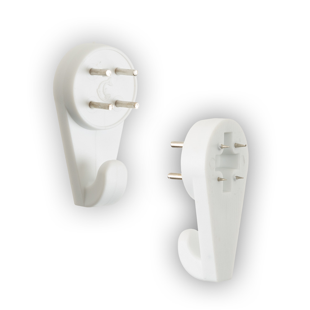 Крючок закрепляется без использования дрели: просто забейте молотком металлические гвоздики в основании крючка.