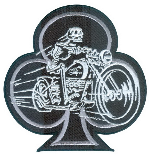 Трефовый туз - символ внутренней энергии. А внутри этого туза неукротимая энергия мотоциклиста, заставляющая мчаться на своём байке и после смерти.