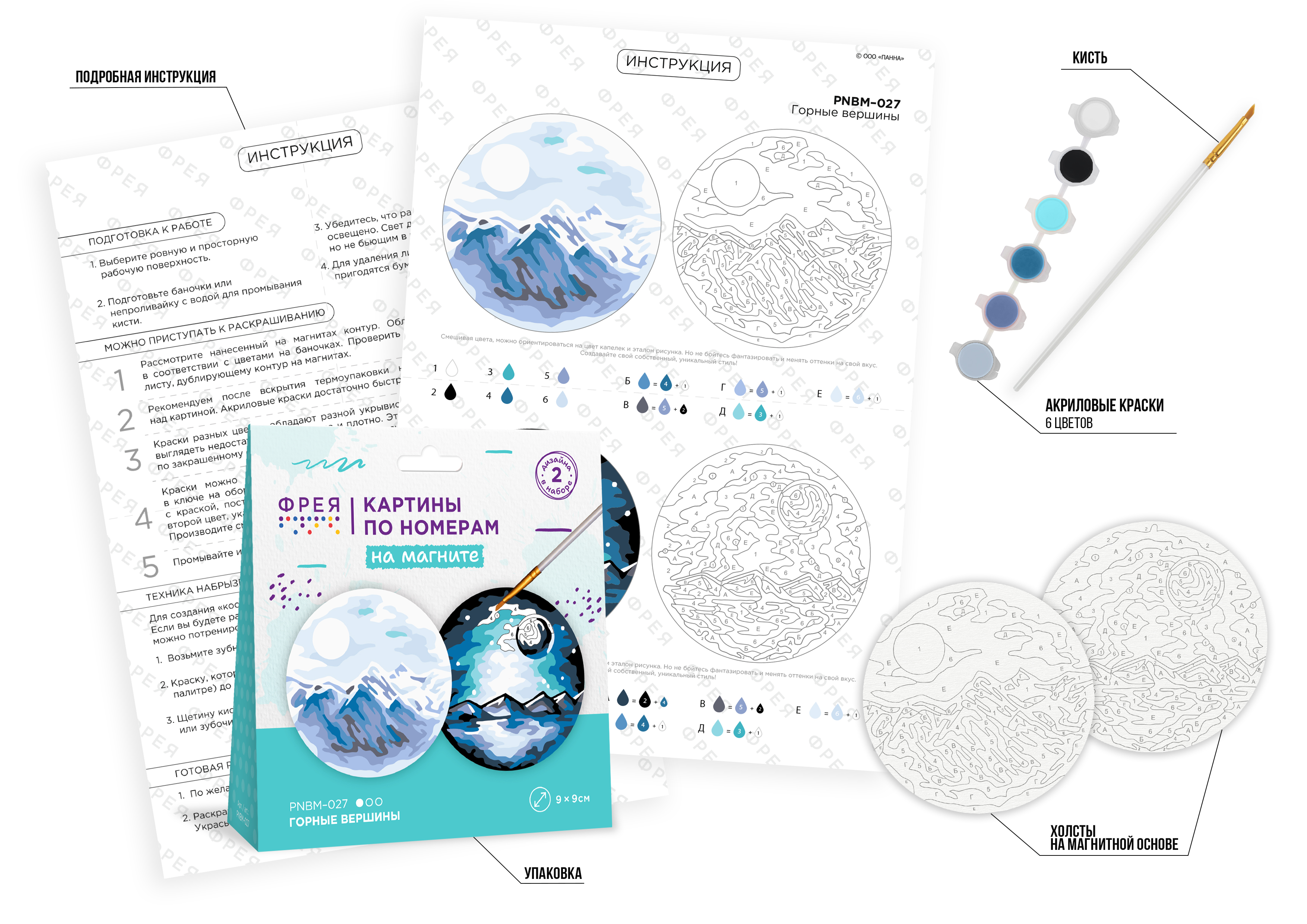 - "ФРЕЯ" PNBM-027 Набор для раскрашивания по номерам (на магните) 9 х 9 см "Горные вершины"