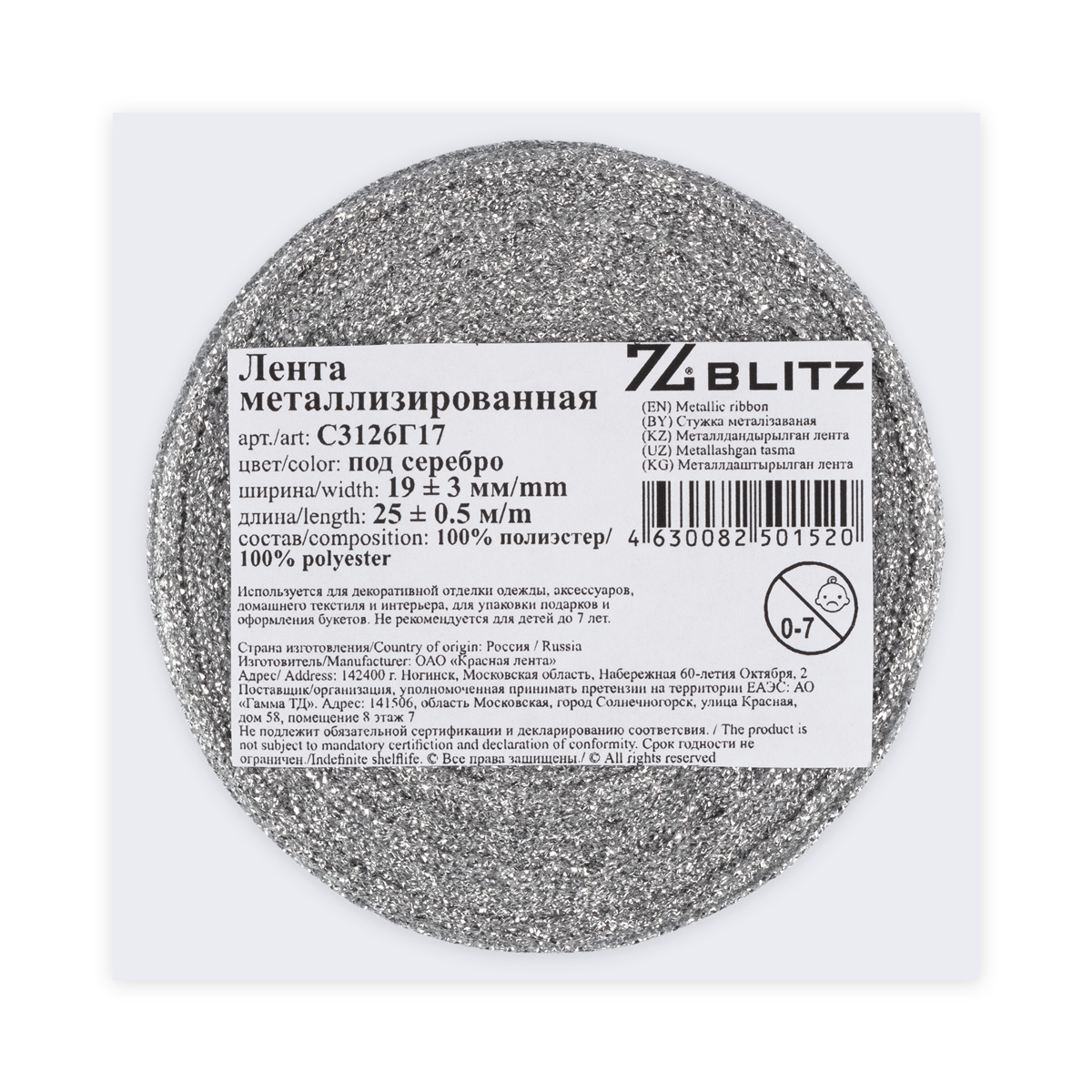 "BLITZ" С3126Г17 лента металлизированная 19 мм ± 3 мм 25 м ± 0.5 м "Атекс" г. Пермь