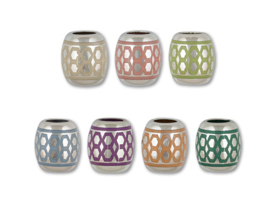 Бусины акриловые под металл с различным цветным орнаментом, форма бочонок.