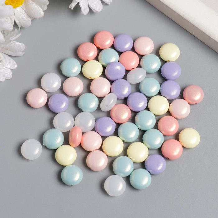 Бусины пластик "Сплюснутый шар. Пастель" перламутр 20 гр 0,6х1х1 см