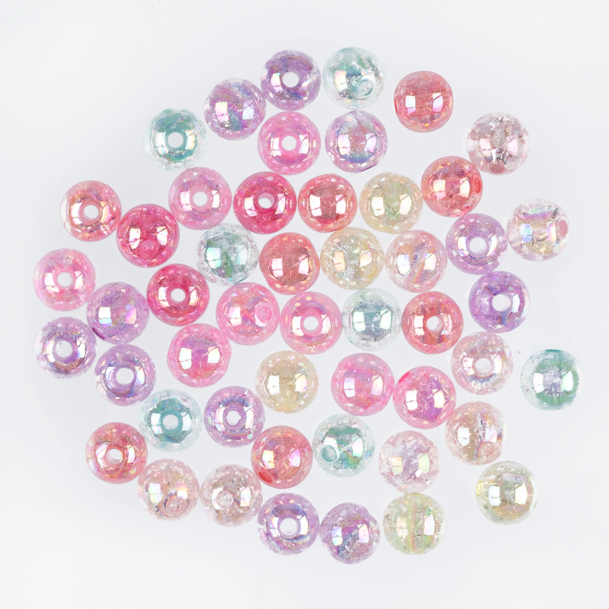 Радужные круглые бусины с эффектом кракелюра и глиттером придадут индивидуальности вашим изделиям.