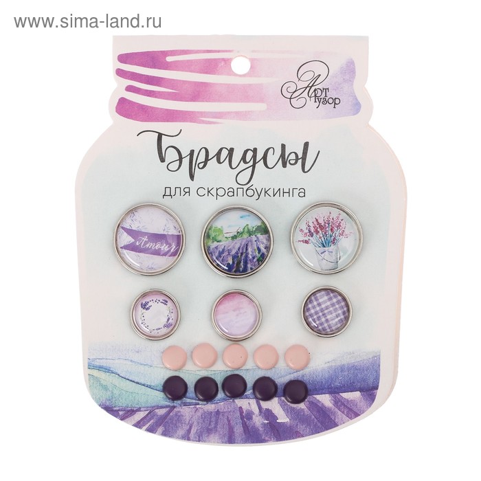 - Набор брадсов для скрапбукинга с картонным декором «Лавандовые сны», 8 х 10 см