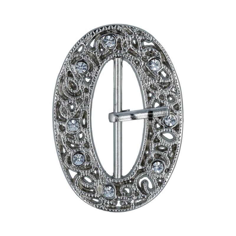 Пряжка декоративная с вертикальной перекладиной и язычком, на которой находятся 8 страз.