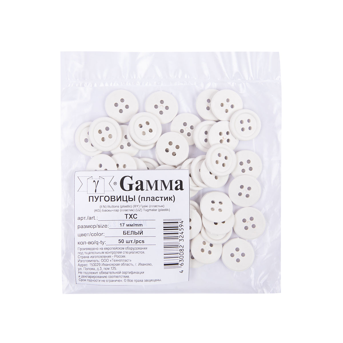- Пуговицы пластиковые (Б) ТХС 27 " 17 мм 50 шт "Gamma"
