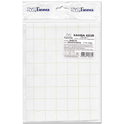 Канва К03R "Гамма" - ткань для вышивания. Состав: 95% хлопок, 5% терилен. Кол-во клеток: в 10 см - 43, в 1 дюйме - 11. Размер канвы: 30х40 см. Цвет:белый в клетку. Канва используется в качестве основы для вышивания крестом, полукрестом. Канва достаточно жесткая, плотная и позволяет вышивать без использования пялец. Каждый отрез упакован в пакет с евро-слотом, есть штрих-код. В продаже также имеется канва К03R "Гамма" в рулоне . Рекомендации по удалению лески после вышивки: Аккуратно подденьте леску пинцетом. Оберните леску вокруг пинцета 3 раза, чтобы зафиксировать ее. Плавно, с небольшим усилием, потяните на себя и удалите из канвы. Разлинованная сетка позволяет вам легче воспринимать схему рисунка, считать клеточки канвы и перемещаться по ткани.