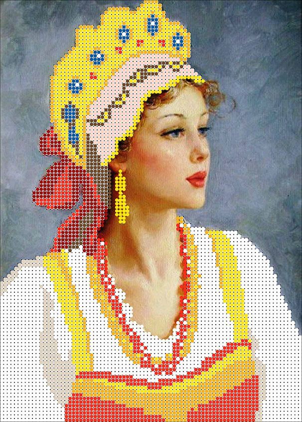 Ткань с рисунком "Мастерица" для вышивание бисером А4 20х30 см