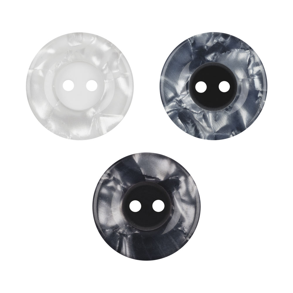 Пуговица пальтовая, на ножке, круглой формы, с перламутровым эффектом.