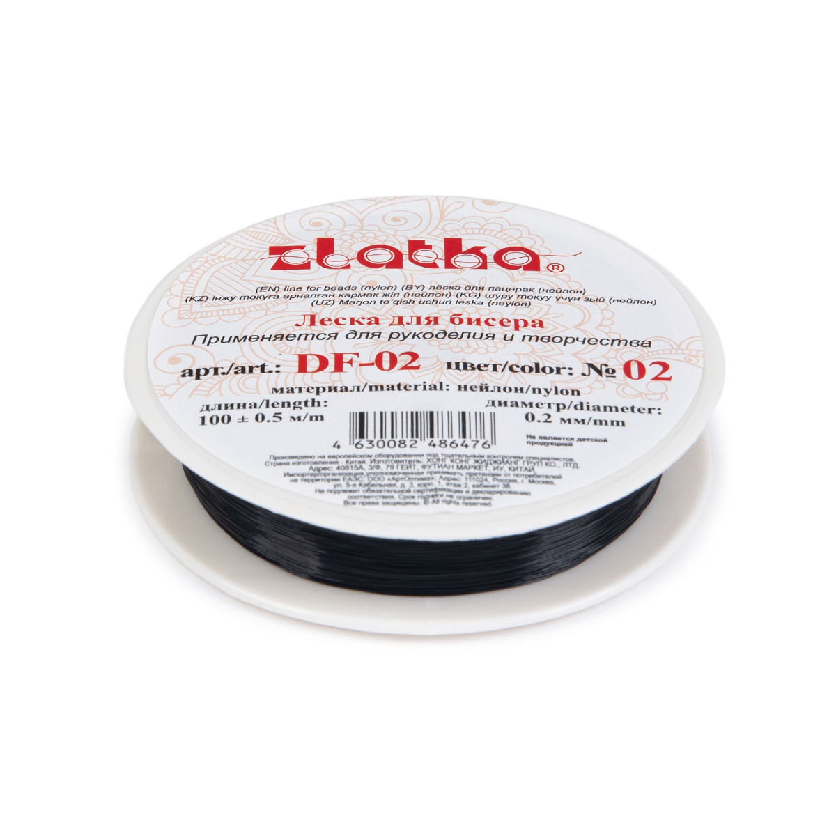 - "Zlatka" / "Gamma" Леска для бисера DF-02 d 0.2 мм 100 м ± 0.5 м №02 ЧЕРНЫЙ