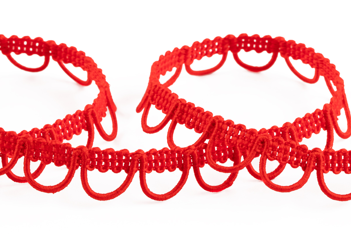 Тесьма плетеная с эластичными петлями. Петли высотой 5 мм, изготовленны из плотного эластичного шнура, которые легко держат форму.