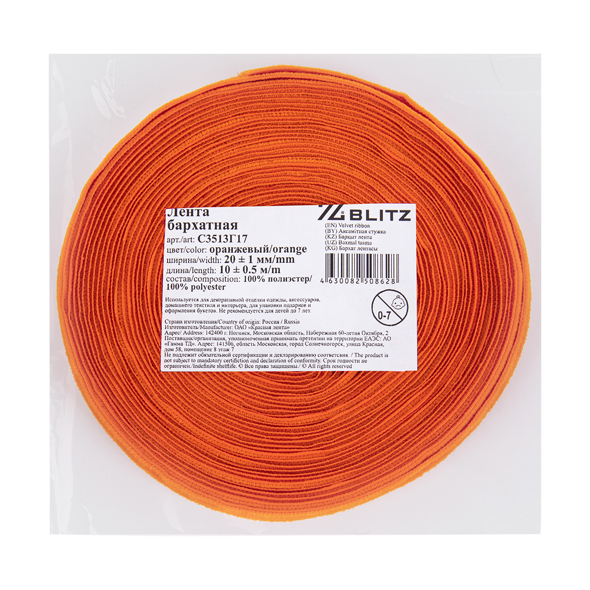 - Лента бархатная 21 мм 10 м ± 0.5 м С3513Г17 "BLITZ"
