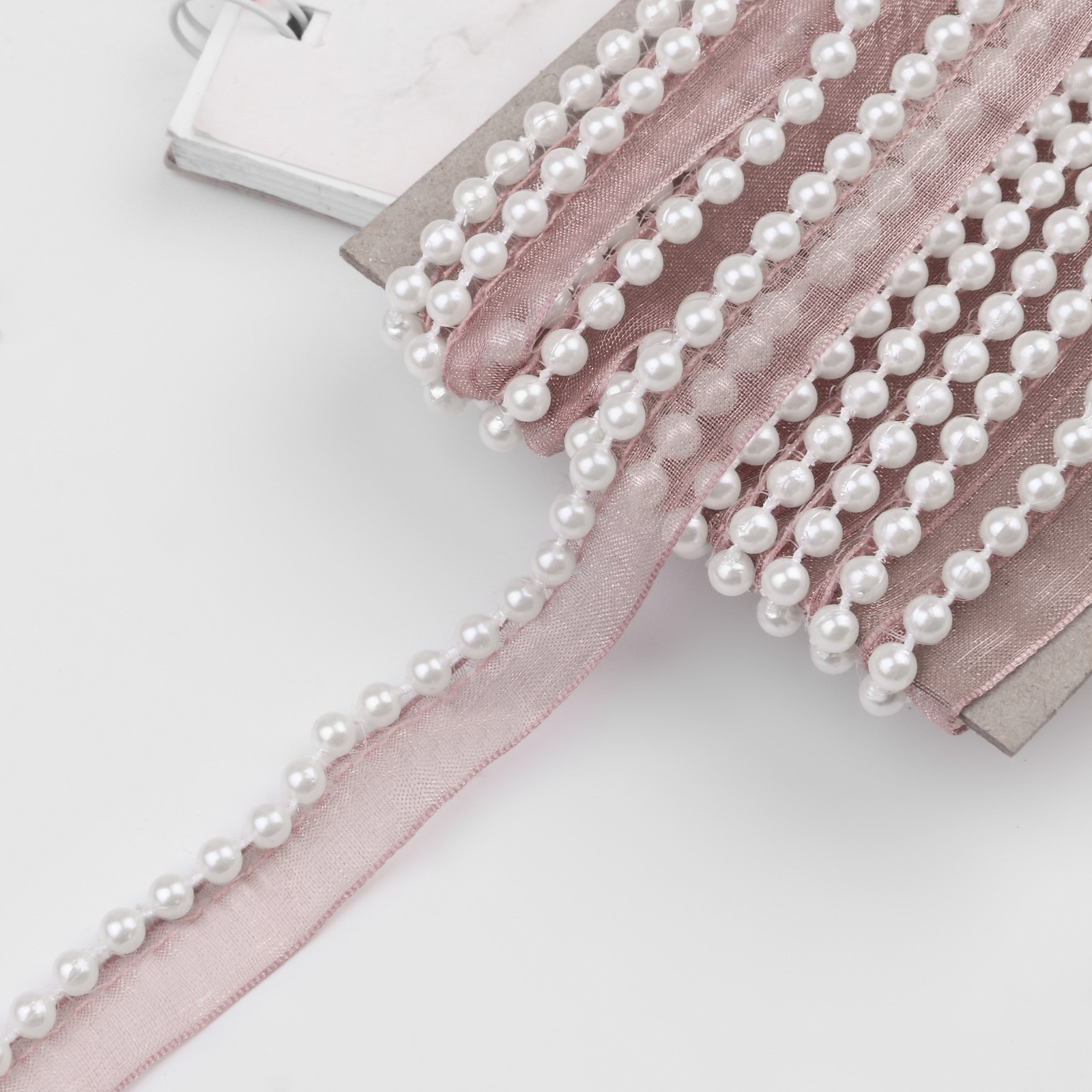 - Лента декоративная с бусинами 12 мм 4,5 ± 0,5 м пыльная роза №92