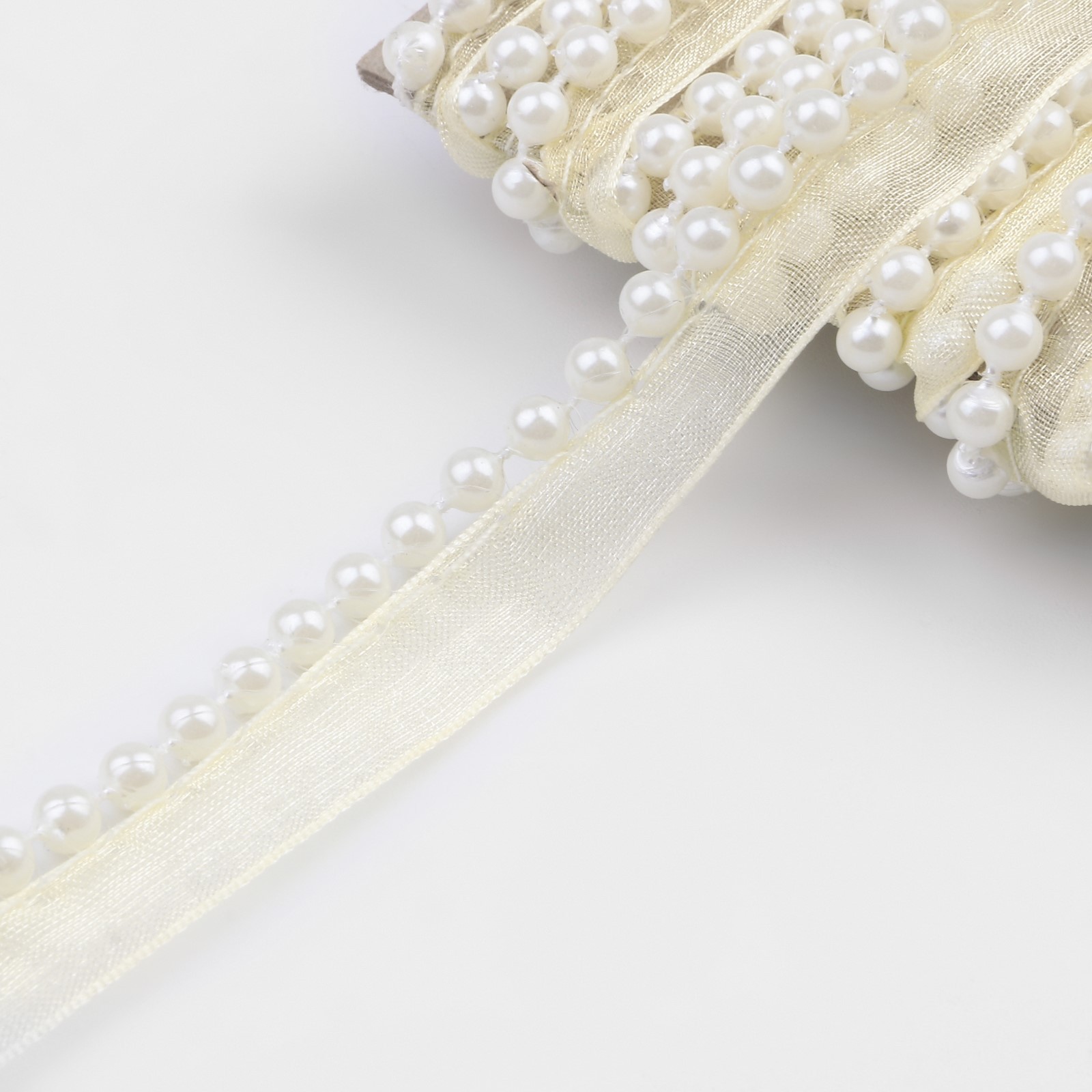 Лента декоративная с бусинами 12 мм 4,5 ± 0,5 м слоновая кость №08