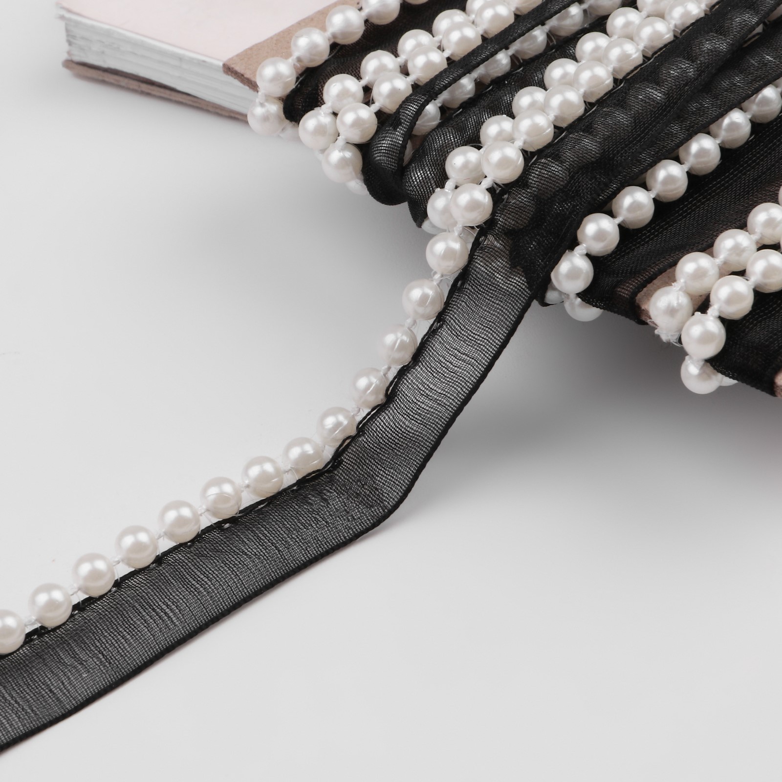 Лента декоративная с бусинами 12 мм 4,5 ± 0,5 м чёрный №39