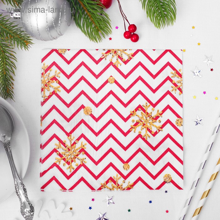 Салфетки бумажные "Снежинки и зигзаг" (набор 20 шт) 33*33 см