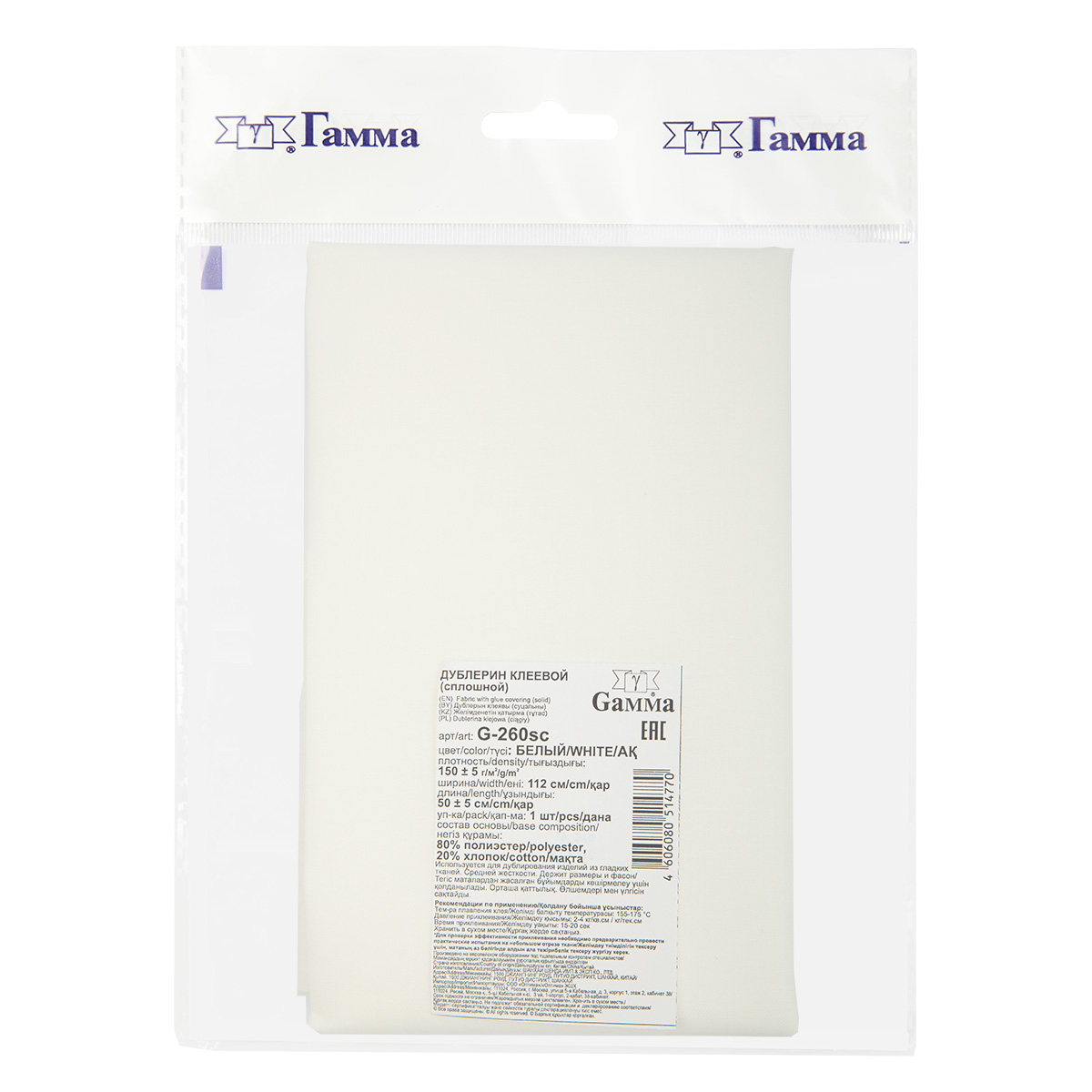 - Дублерин G-260sc сорочечный тканый сплошной 150 г/кв.м ± 5 ФАСОВКА 112 см х 50 см БЕЛЫЙ