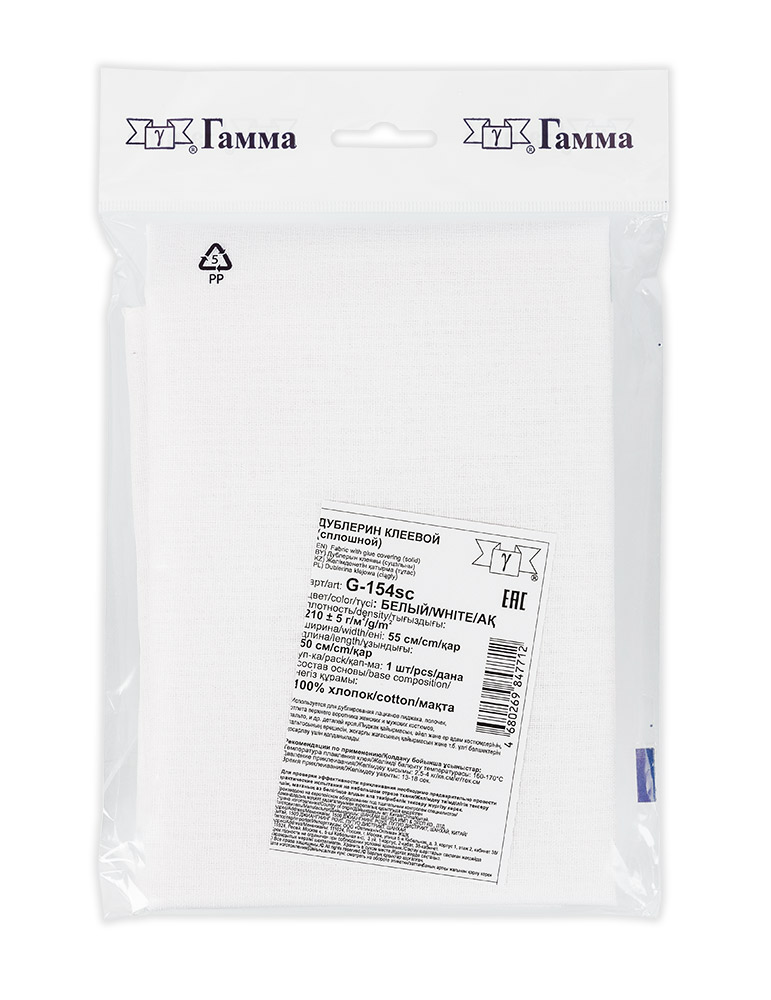 Дублерин G-154sc ФАСОВКА сорочечный тканый сплошной 55х50см "Атекс" г. Пермь