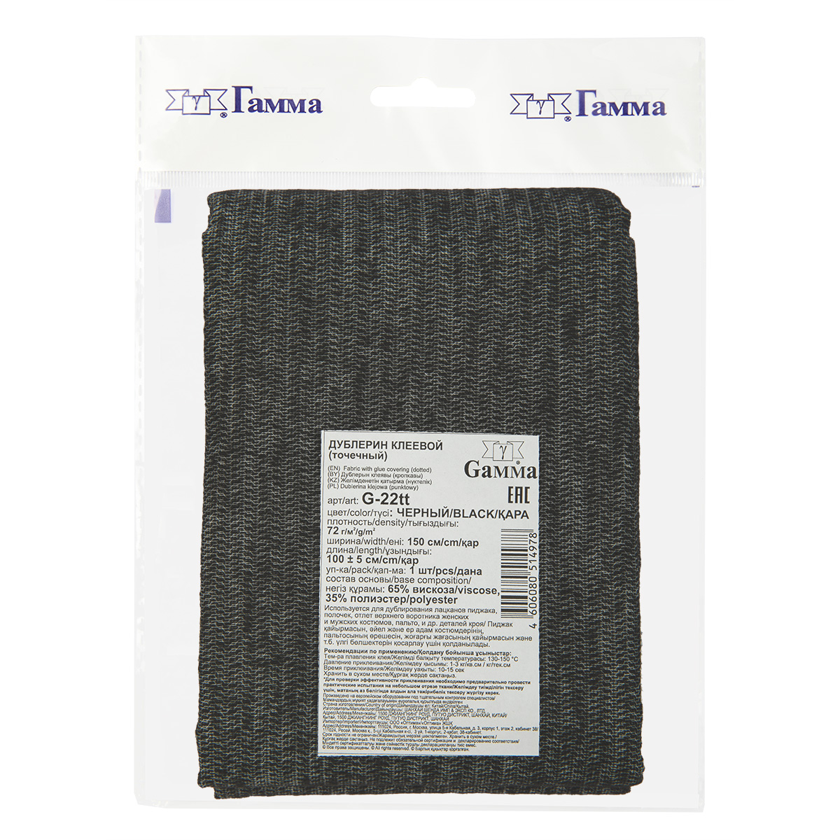 - Дублерин G-22tt ФАСОВКА тканый точечный 150х100см черный