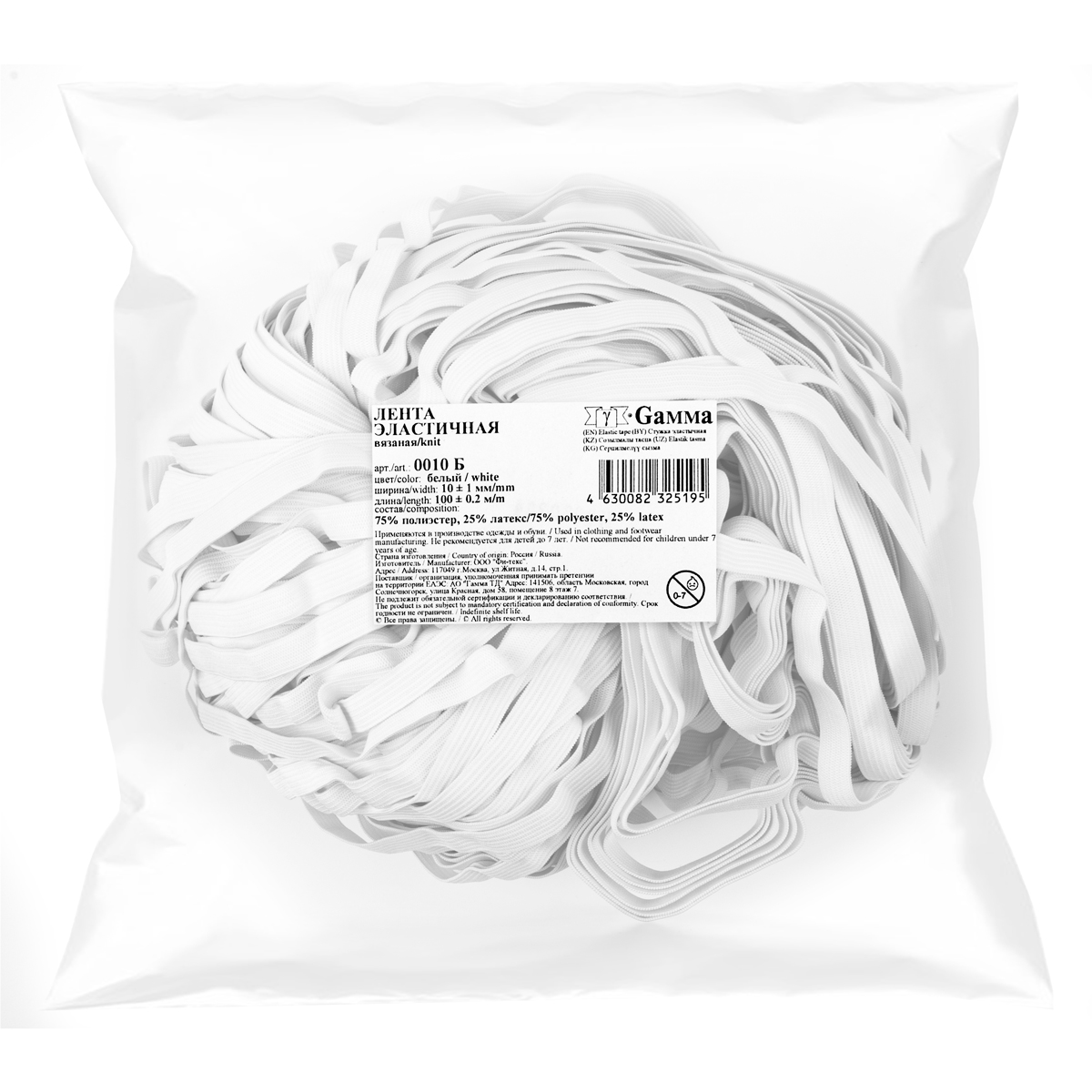 - Лента эластичная 10 мм 100 м 0010 БЕЛЫЙ