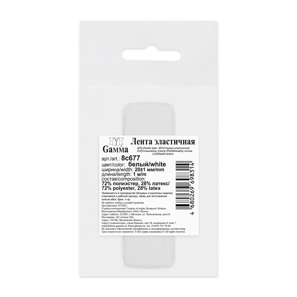 - Лента эластичная 20 мм ± 1 мм 8с677 Б ФАСОВКА 1 м тканая белый