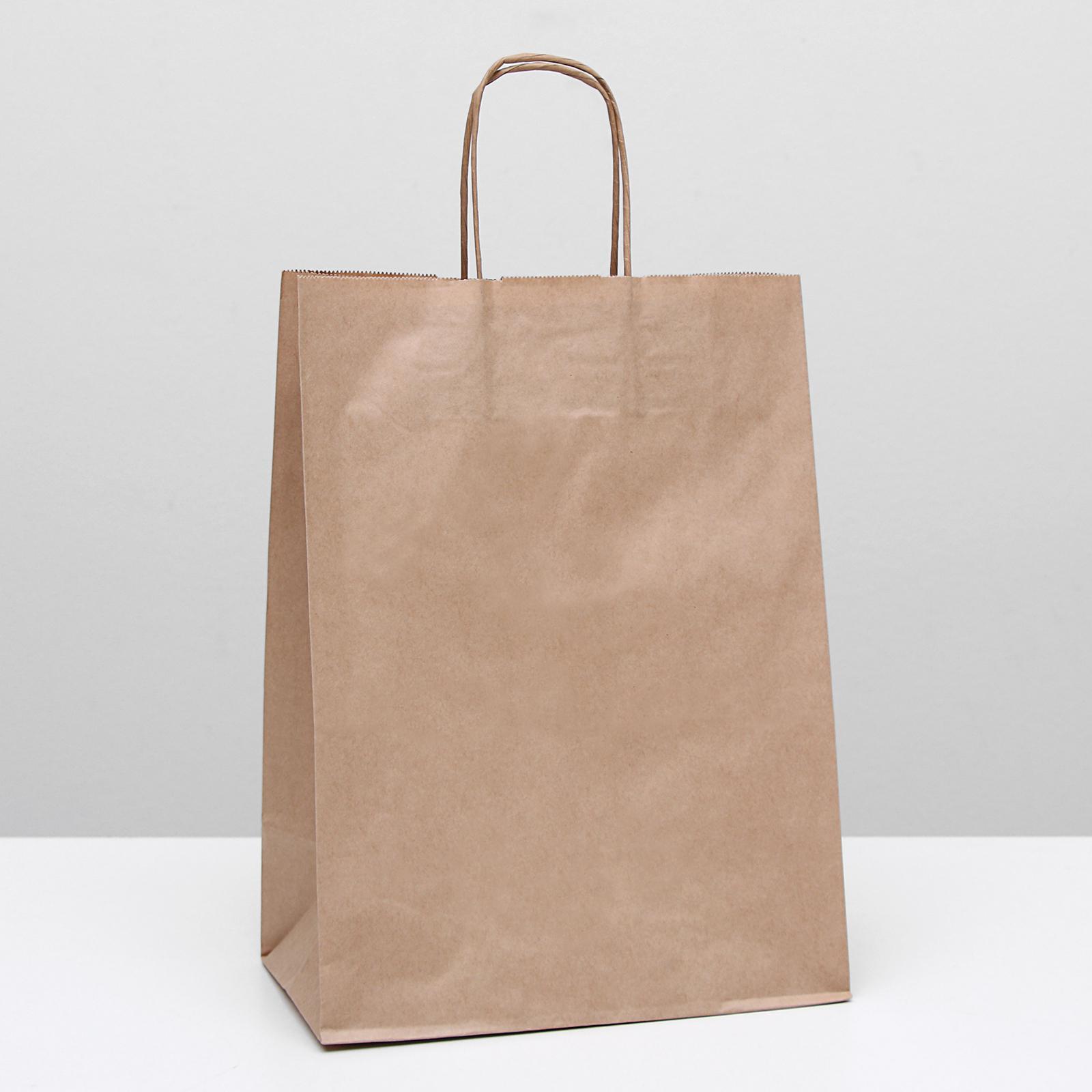 Пакет крафт без печати круглая ручка 26 х 15 х 35 см