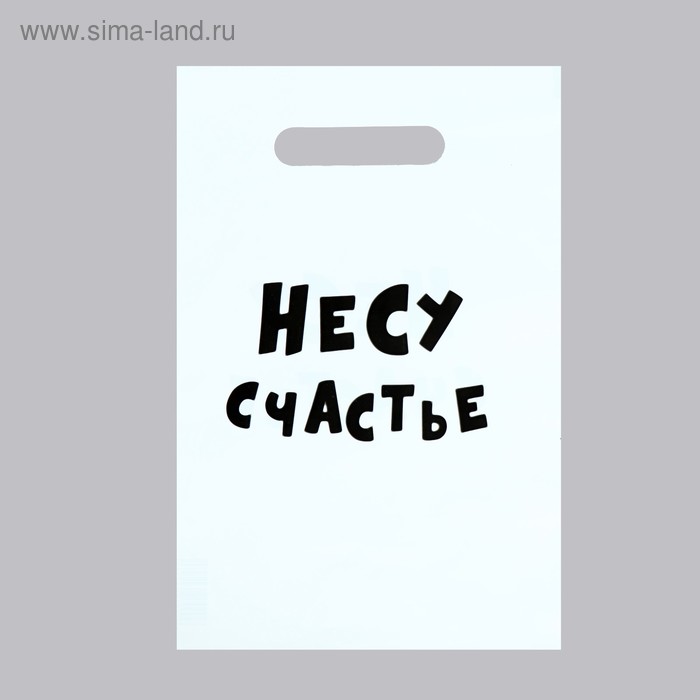 - Пакет с приколами полиэтиленовый с вырубной ручкой «Несу счастье» 35 мкм 20 х 30 см белый