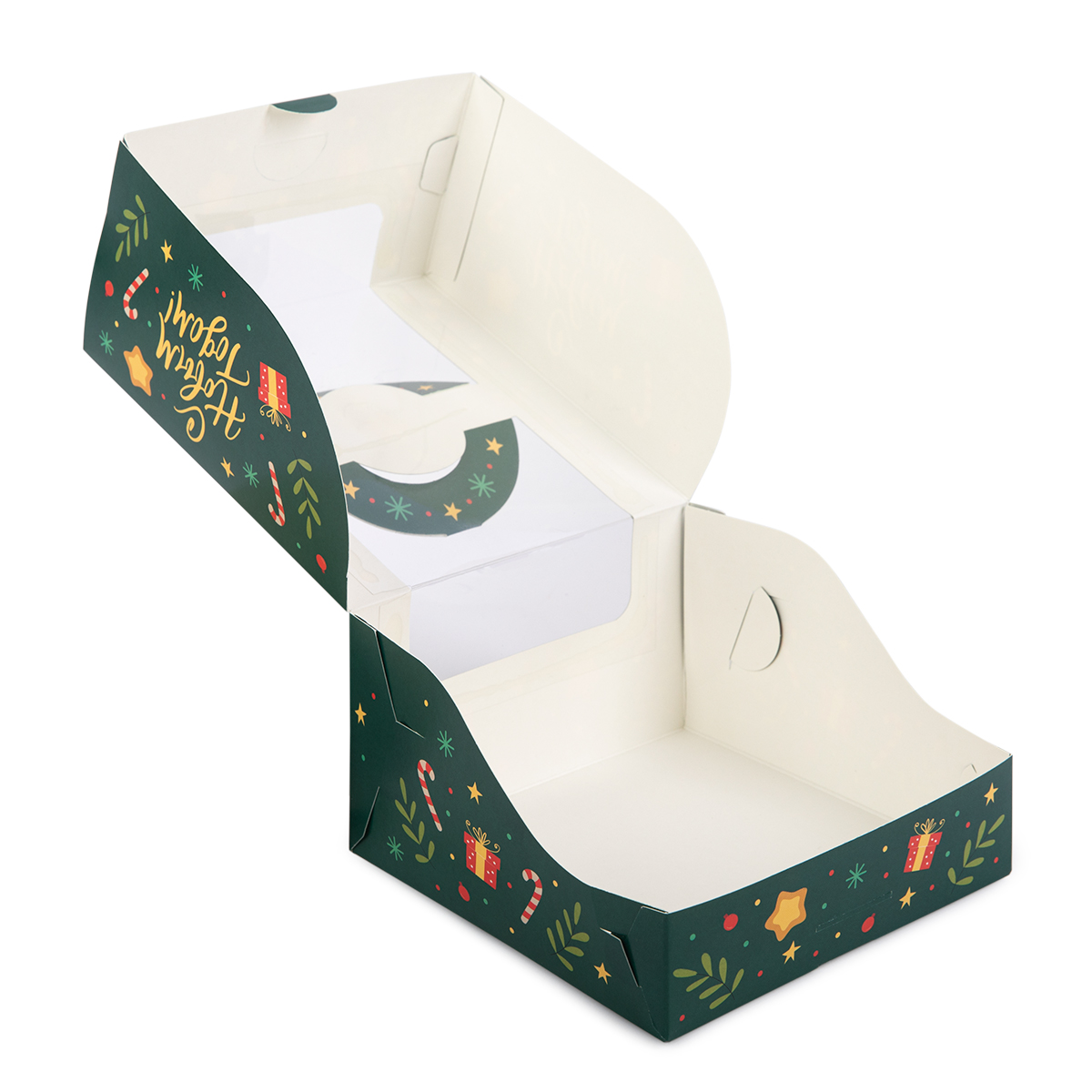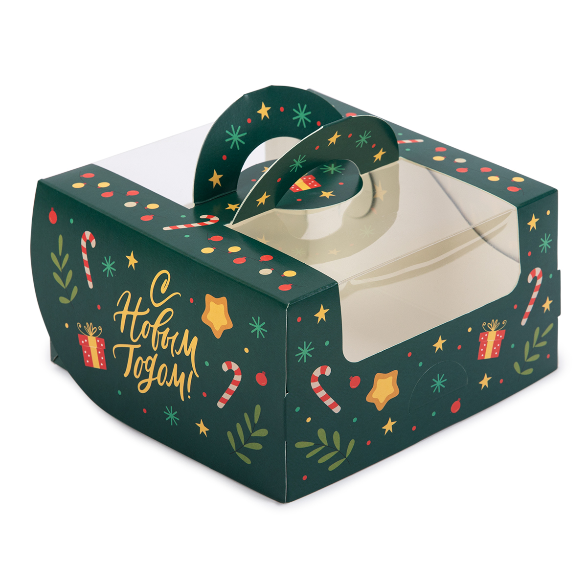 Кондитерская упаковка предназначена для транспортировки и презентации кондитерских изделий. Коробка проста и удобна в сборке. Коробка с новогодним принтом. Имеет прозрачное окошко для лучшей презентации кондитерского изделия. Продается в разобранном виде.