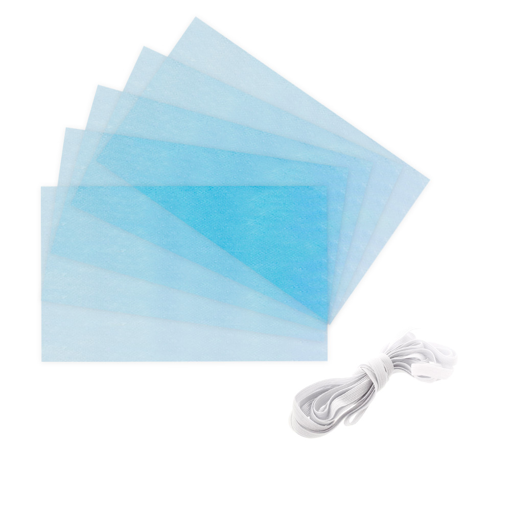 В состав набора входят материалы для изготовления 5-ми масок: снанбонд-мельтблаун, эластичная резинка, инструкция по пошиву маски.