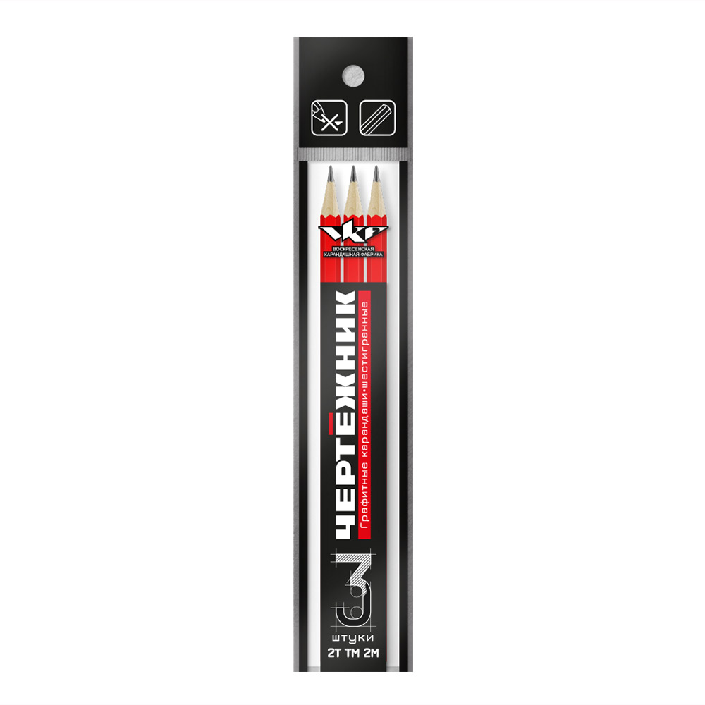 - "Чертежник" 3P-1000 Набор графитных карандашей ОПП 3 шт 2Т, ТМ, 2М