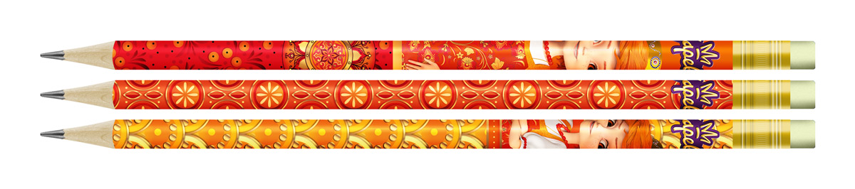 Набор графитных карандашей Hot Print, ТМ, круглые, с ластиком, диаметр 7.0мм, длина 190мм, заточенные, упаковка в ПП пакете по 3 шт. Предназначен для графических работ любой сложности. Дизайны с царевной Варей и узорами серии.