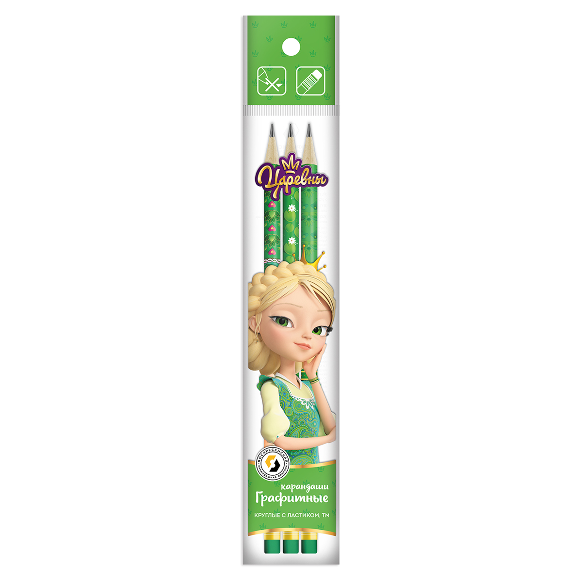 - "ВКФ" "Царевны" TSR-3P-04 Набор графитных карандашей круглые с ластиком ОПП "Василиса" ТМ (HB) 3шт