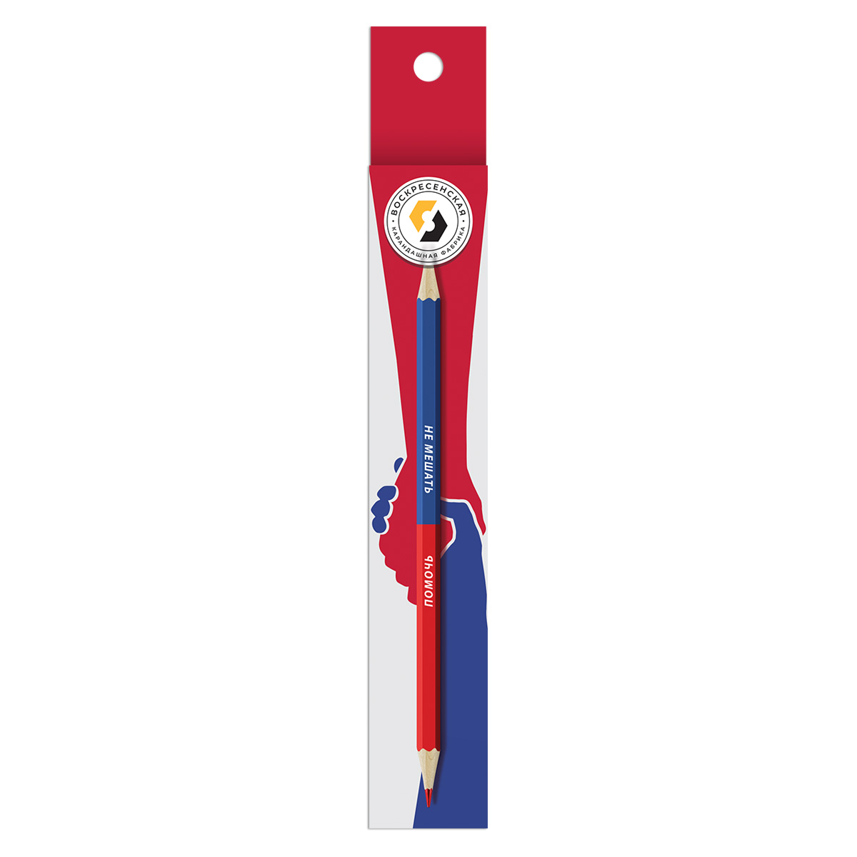 Карандаш двухцветный красно-синий заточенный ТМ «ВКФ» "Карандаш со смешными фразами" арт. SUV-022 помочь/не мешать.