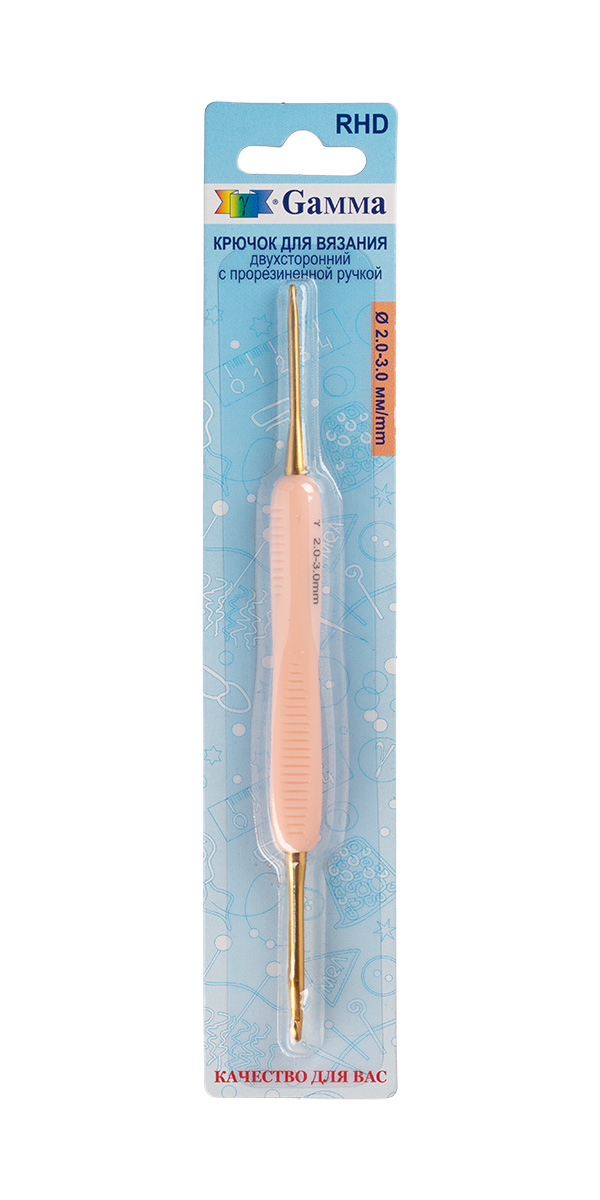 "Gamma" RHD крючок двухсторонний пластик алюминий d 2.0 - 3.0 мм 13.5 см в блистере с прорезиненой ручкой