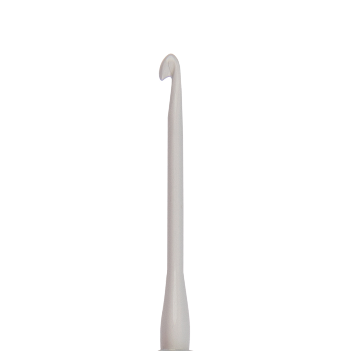 Крючок легкий и эргономичный. Он удобно ложиться в руку и обеспечивает максимальный комфорт при вязании. Форма ручки запатентована, номер патента 134091.