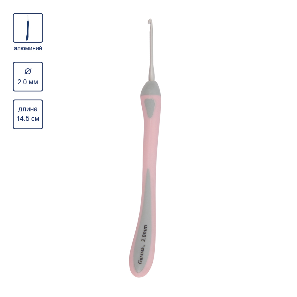 - "Gamma" RHT крючок с прорезин. ручкой алюминий d 2.0 мм 14.5 см в блистере