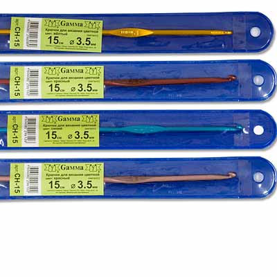 Крючки для вязания металлические с цветным анодированным покрытием/ красный, желтый, розовый, синий/. Анодирование является надежным способом защиты металла от коррозии, образуя на поверхности пленку, которая не отслаивается от металла и обладает высокой износостойкостью.