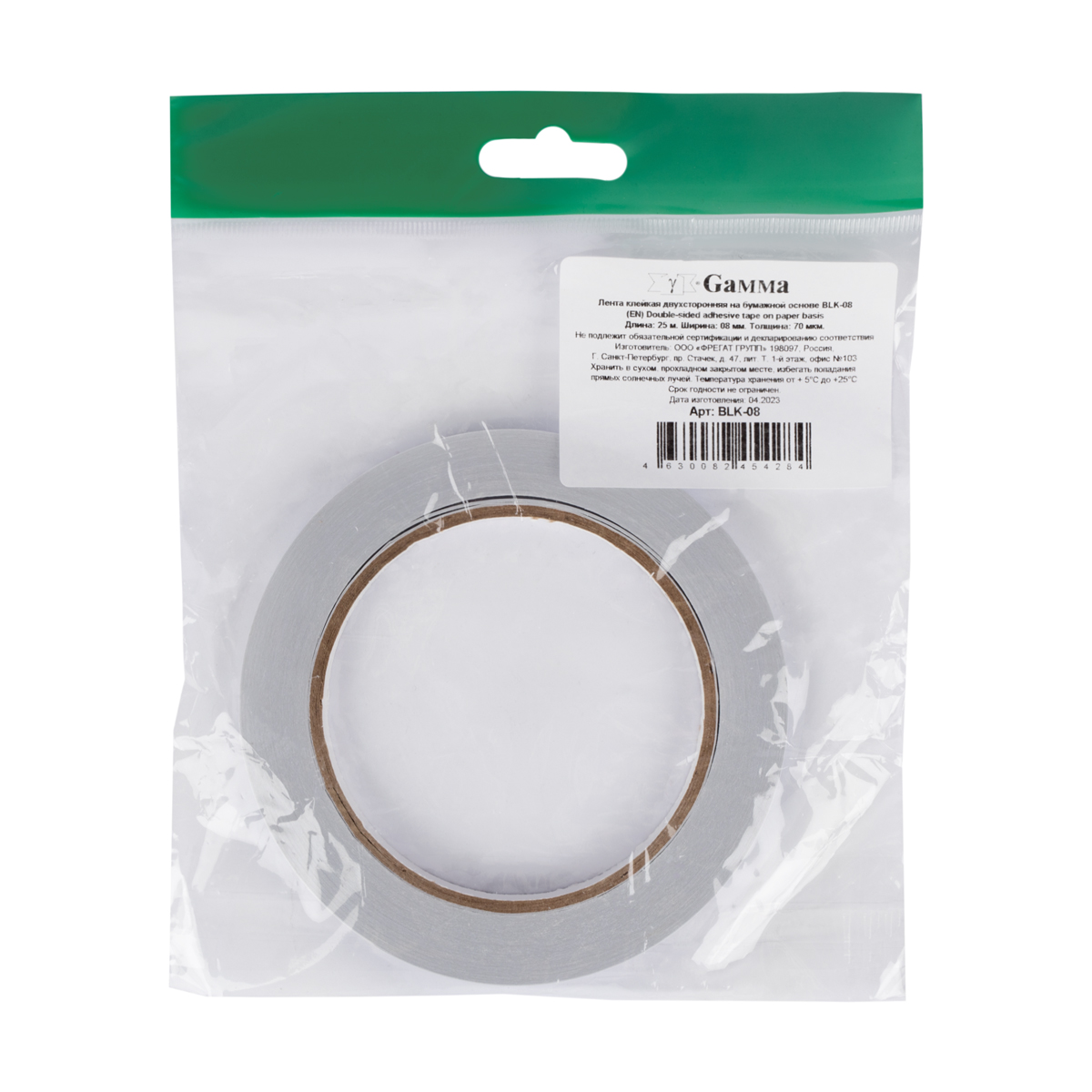 - "Gamma" Лента клейкая двухсторонняя на бумажной основе BLK-08 8 мм х 25 м белый