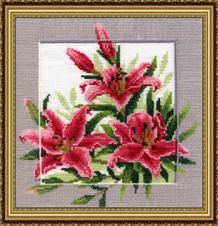В наборы для вышивания входят: канва, шерстяное мулине "Радуга" и схема.