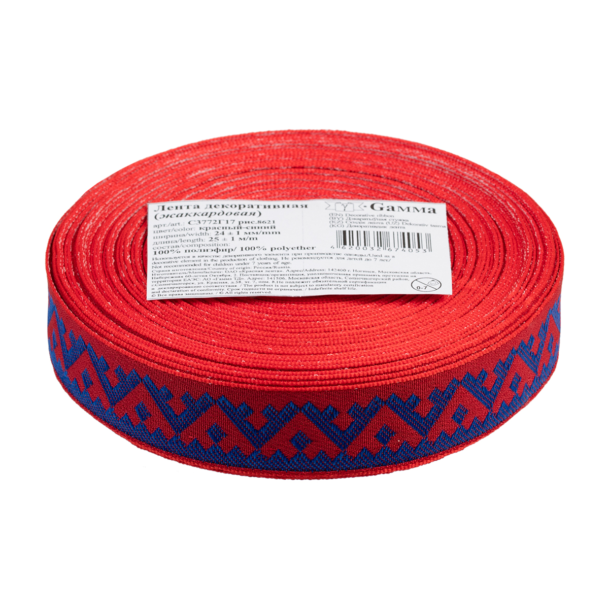 - Лента жаккардовая 24 мм С3772 25 м отделочная "Орнамент для северных народов"