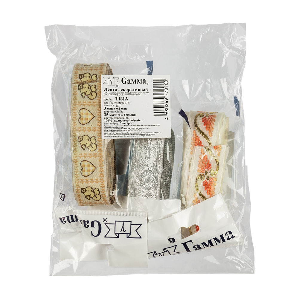Лента жаккардовая 25 мм "Gamma" TRJA 3 х 3 м отделочная ассорти "Атекс" г. Пермь