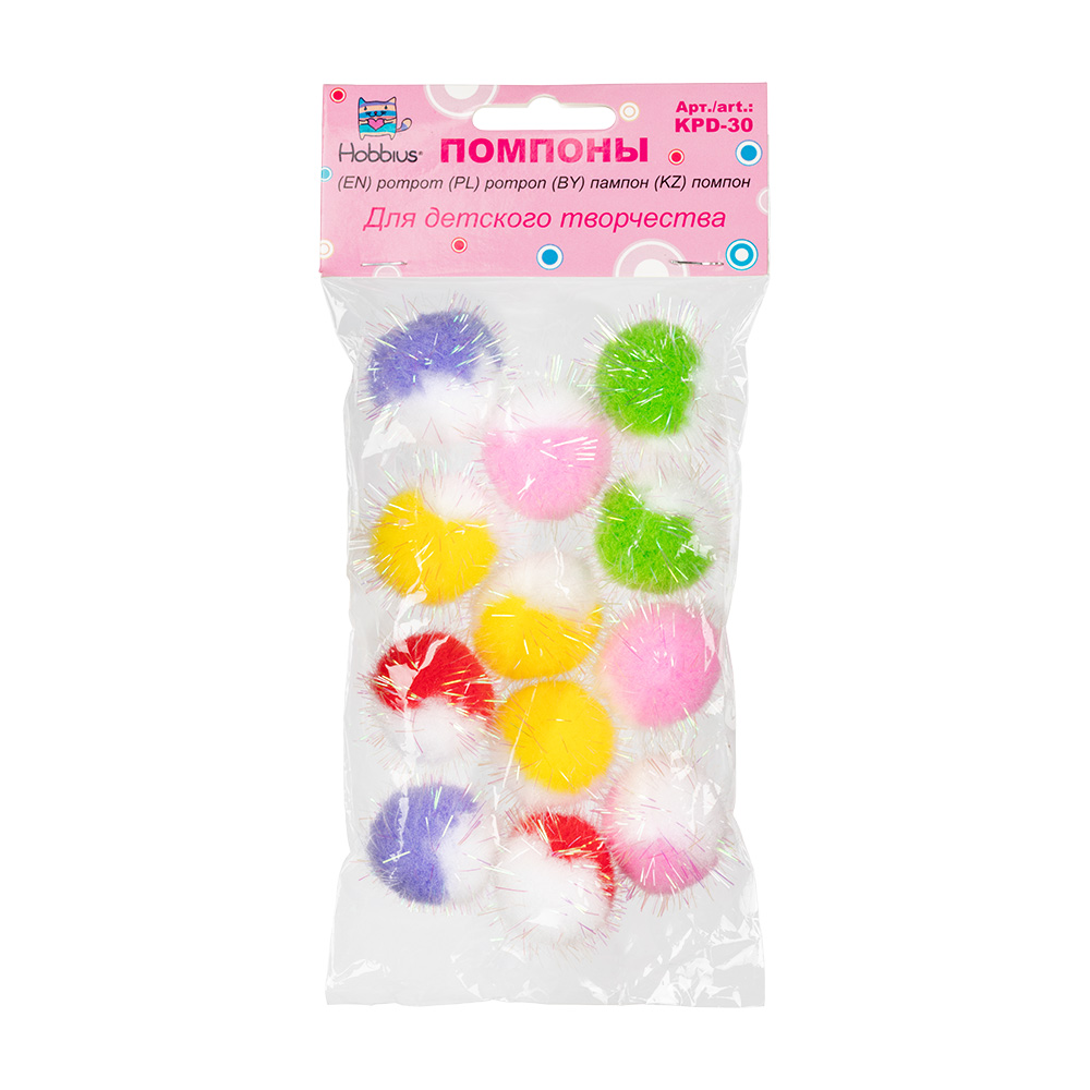 - "Hobbius" KPD-30 Помпоны 30 мм 15 шт ассорти