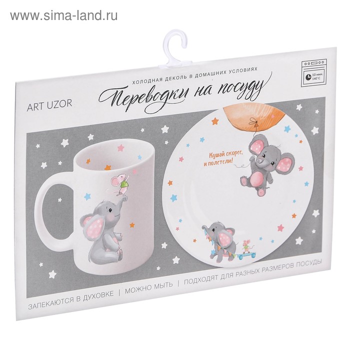 - Переводки на посуду (холодная деколь) «Милый слоник», 21 × 29,7 см